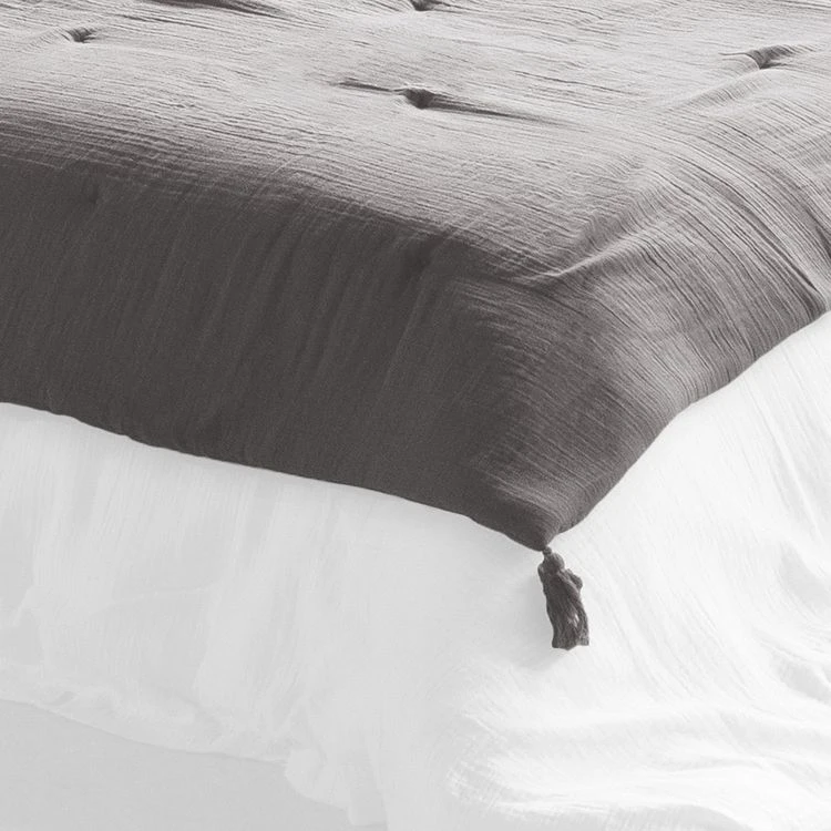 Édredon 150×150 cm Gaze de coton granitTotalement chic et toujours tendance l’édredon en gaze de coton coloris granit est l’élément de décoration pratique élégant qu’il manquait à votre intérieur.Vous adorerez le moelleux de son garnissage et la douceur de la finition gaze de coton. Informations sur l’édredon 150×150 cm Gaze de coton granit :Matière : gaze de cotonDimensions : 150 x 150 cm